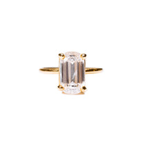 An emerald-cut moissanite feels luminous and glassy.