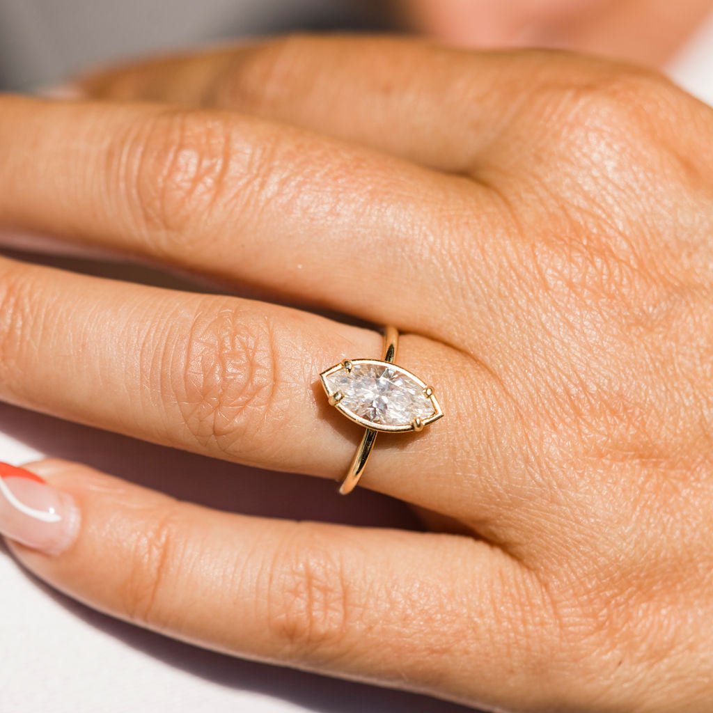 East-west settings are a fresh twist on traditional engagement rings, and they’re becoming a favorite among modern brides. By setting the moissanite gemstone horizontally on the band, this design creates a sleek and contemporary aesthetic. Oval, emerald, and marquise cuts shine in this orientation, offering a bold yet elegant look. If you’re searching for unique engagement rings that balance innovation and sophistication, the east-west setting is a perfect choice. 🤗 ✨